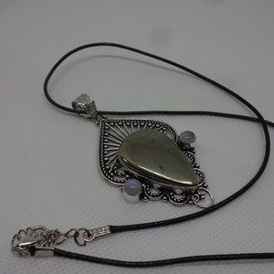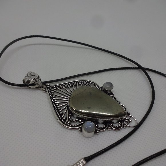 Ornate "APACHE PYRITE & MOONSTONE" Handmade Sterling Pendant on a 18" Black Cord Chain #186