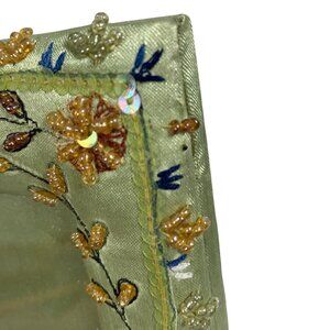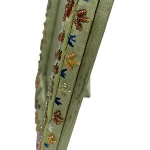 Ornate Beaded Picture Photo Frame Green Satin Fabric Sequins Floral Boho