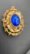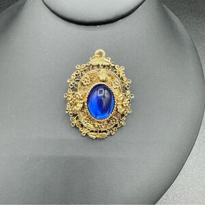 Fancy Ornate Blue Sapphire Colored Lucite Filigree Brooch with Bale in Victorian inspired style