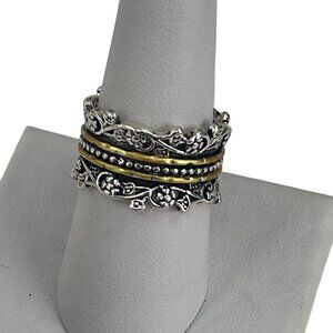 Ornate Floral Ring Sterling Silver and Brass Womens Size 8