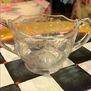 Ornate Gold Etched Filagree Cream Sugar Glass Set