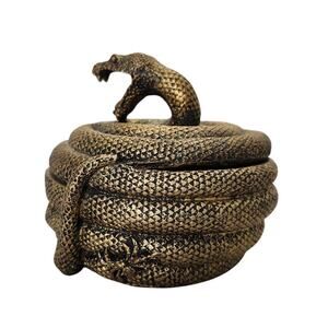Ornate Gold Lidded Jar Trinket Box Snake Fangs Spider Resin King Cobra Gift