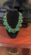 This exquisite necklace showcases vibrant green gemstones set in intricate gold-toned metalwork. The stones are arranged in a graduated pattern, enhancing the necklace's elegant and luxurious appeal. Perfect for adding a touch of sophistication to any ensemble.