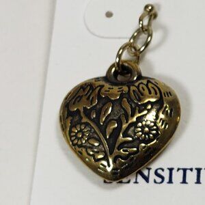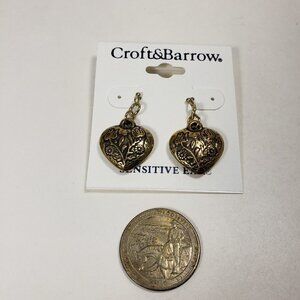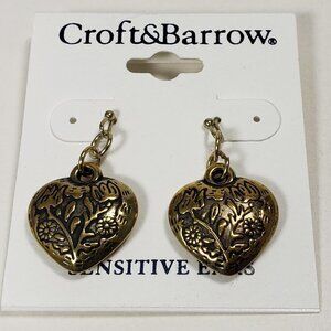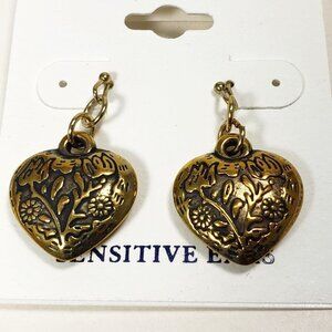 These gold-tone embossed heart design drop earrings are a charming addition to your jewelry collection. Measuring 1 inch in length, the earrings feature a beautifully detailed heart design, adding a touch of elegance and romance to any outfit. Perfect for casual wear or a special occasion, these earrings will enhance your style effortlessly.