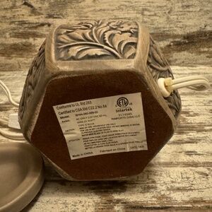 Add an elegant touch to your space with this ornate liquid incense burner, featuring a beautifully detailed carved design and a built-in light bulb. The soft illumination from the light enhances the ambiance, creating a warm and soothing atmosphere while the burner gently heats liquid incense to release calming fragrances into the room. Perfect for those who appreciate both function and style, this burner is ideal for enhancing relaxation and adding a decorative flair to any room. Whether for meditation, aromatherapy, or simply as a unique decor piece, this incense burner will elevate the atmosphere of your home.