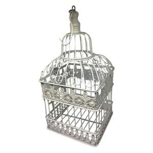 Ornate Metal Cream White Bird Cage Decor Hanging Latch Close Flip Top Wedding