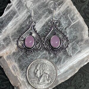 Ornate Pink Chalcedony and Heart Earrings Stone Crystal Jewelry