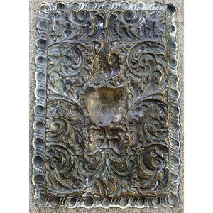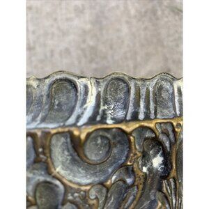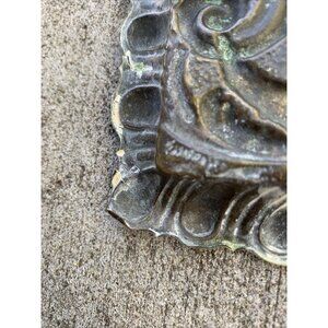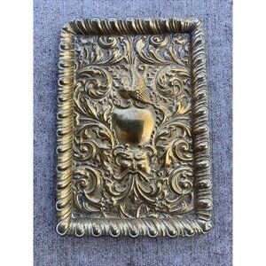This antique tray boasts intricate baroque-style detailing with a central bird motif, a testament to exquisite craftsmanship. Ideal for collectors or as a sophisticated addition to interior decor, the brass composition enhances its timeless appeal.