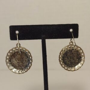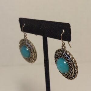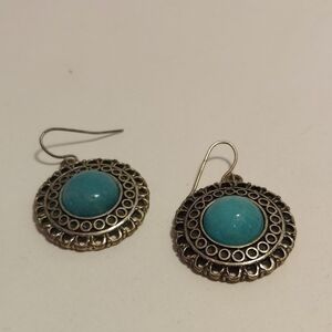 Ornate Silver Tone Costume Earrings w Faux Turquoise Approx 1" Diameter Boho
