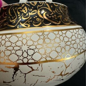 Ornate Unique Arabic Style Tea Kettle Black Cream Gold Patterned Vintage Look