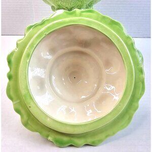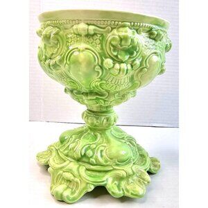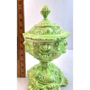 Ornate Vtg Green Ceramic Hand Crafted Pedestal Victorian Candy Jar Farmhouse