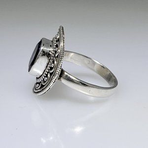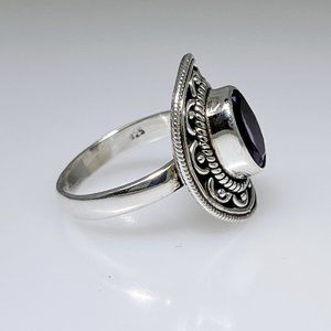 Ornate sterling silver with natural faceted Amethyst ring, size: 7.50 NWOT