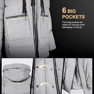 Featuring a warm fleece-lined hood, special side zippers, and 6 big pockets, it is warm and cute for you to enjoy outdoor activity on wintry days.