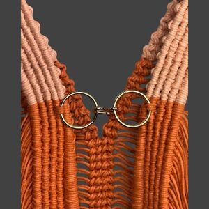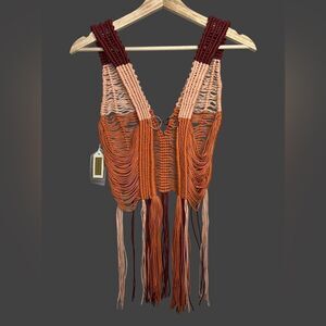 Oropendola FP Macrame Women’s Top Fringe Sleeveless V Neck Statement Piece Small
