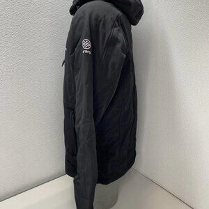 Designed with zipped pockets, insulated fabric, and a stand-up collar, the jacket offers functional utility with a sleek, modern silhouette.