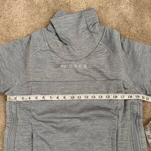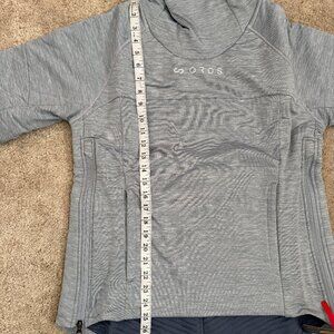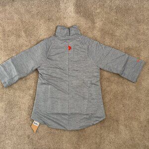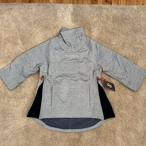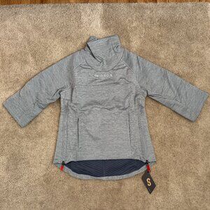 Women's size Medium. Titanium Heather (light gray). Insulated with Solarcore, this is a warm and cozy layer in a flattering A-line silhouette. Oversized collar, kangaroo pocket, adjustable side zips.