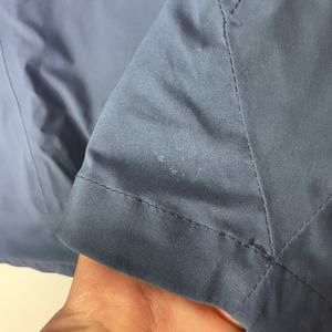 Light wear overall. There are a couple light white marks that you can see in the up close photos. No holes or rips. Zippers work great. Please look at all the photos.