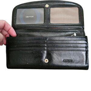 Oroton Black Leather Womens Wallet With Snap Closure & Multiple Compartments
