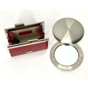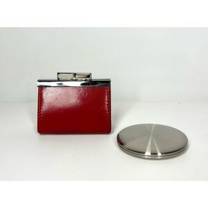 Oroton Kisslock Coin Change Purse Red Leather and Silver Mirror New Vintage