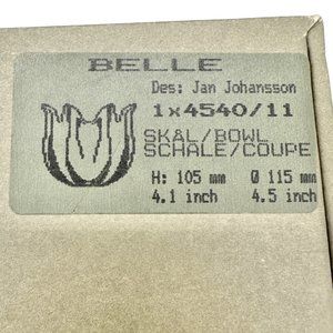 Orrefors Sweden Belle Tulip Bowl 4540/11 Lead Crystal 4x4.5in Original Box - This is vintage Orrefors' crystal Belle Tulip Bowl designed by Jans Johansson, made in the 1970's. It's the 4" size by 4-1/2" round at the rim. It's a heavy piece of glass for its size and features six flaring petals, producing very nice optical lighting effects.