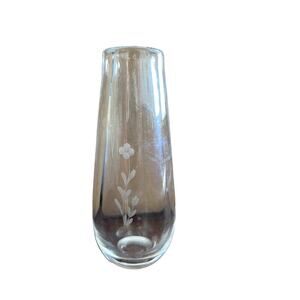 Orrefors Sweden Crystal Bud Vase Signed Numbered Excellent Heavy Etched Flowers