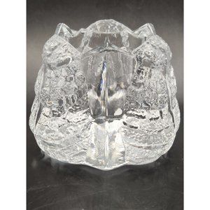 Orrefors Sweden Crystal Eden Textured Leaf Fossil Candle Votive Holder