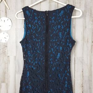 Orsay Lace Overlay Sleeveless Dress Black & Teal.
