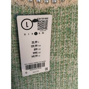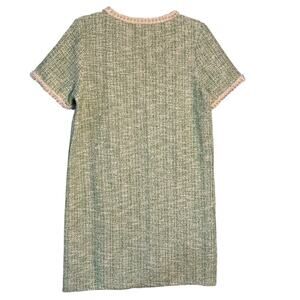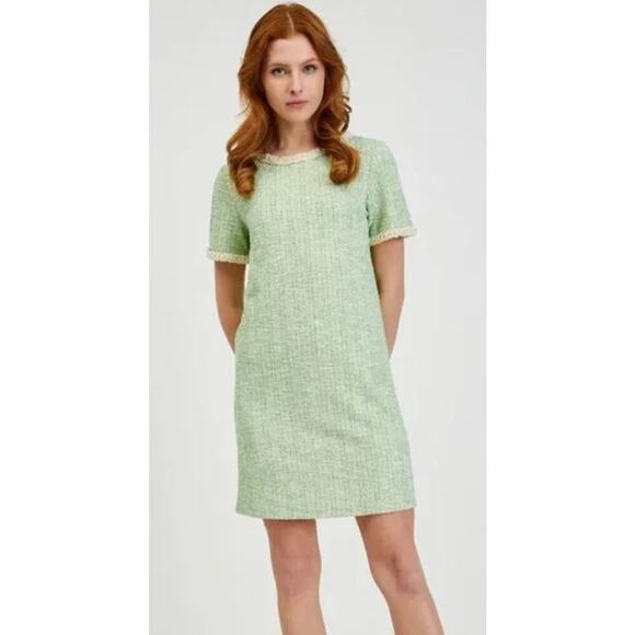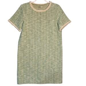 Orsay NWT Sz L Green Metallic Tweed Boucle Dress Pearl Neck & Cuff Royal Duchess