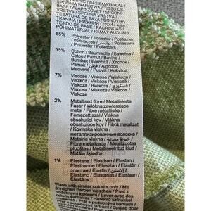 Details: Orsay Green Metallic Tweed Pearl Dress, pearl detailing on sleeves and neck, round neckline, shift boucle style, soft and stretchy, pull on