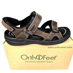 OrthoFeet Gemini Leather Adjustable Brown Sandals w/Box Men's SZ 14 (4E)