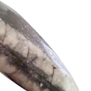 Showcases a polished orthoceras fossil with unique patterns, complemented by a sterling silver 925 bail for elegance and durability.