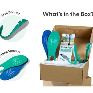 Ortho-Cushion™ System: Includes premium orthotic insole, Arch Booster, and fitting spacers for pain relief and personalized fit.