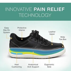 Orthofeet Women's Orthopedic Black Leather Wander Hands-Free Sneakers, Size 6