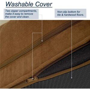 -MATERIAL FEATURES: ①Durability. EMME Orthopedic dog bed uses Polyamide Corduroy for the cover to provide Stronger Durability, Better Scratch Resistance and Better Bite Resistance than regular polyester pet bed. ②Cozy Cover. 220G Plush Faux Fur is used on top of the cozy cushion base for the sleep surface, which can provide extra soft comfort and delightful snuggling feeling. ③Sliding Resistance. The bottom uses black non-slip dot to avoid slippery