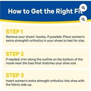 Orthotic insoles featuring full-length cushioning and arch guard technology. Designed for added stability and shock absorption. Blue, orange, and yellow accents.