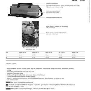 This 100% waterproof travel bag has all the advantages of an easy to use dry bag: its flexible and variable packing volume adjusts to any situation and takes all the gear for travelling and sports. The roll closure with stiffener bar has its roots in stuff sack technology. It fits perfectly into bike trailers and sizes S or M can be combined with ORTLIEB Back- and Front-Rollers Plus and Classic on the rack for bike touring. This robust multi-talent bag is also good on motorcycles. Comfortably carried with adjustable padded shoulder strap and carrying handles.