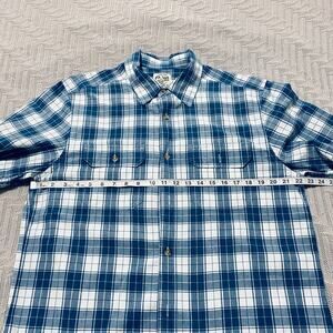 Orton blue plaid short sleeve button down, size L. Recently professionally dry cleaned. Previously loved and in excellent condition. Non smoking and pet free house.
