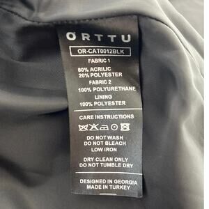 Orttu Freddie Jacket Military Style Faux Fur Black Vegan Faux Leather Aqua Belt