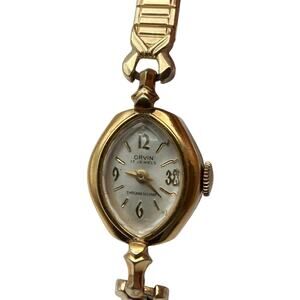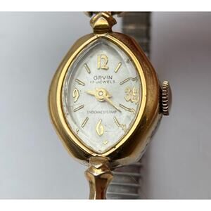 This is a beautiful vintage Orvin women's watch! It features 17 jewels and a mechanical wind-up movement. The watch is shock-resistant and has a 17mm case size. The band is expandable for a comfortable fit. This watch is in working condition and ready to wear or add to your collection.