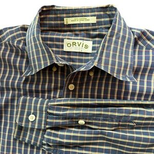 Orvis 100% Cotton Blue Plaid Men’s Button Down Shirt L