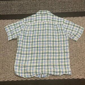 Orvis 100% Linen Button Down Shirt Men’s Sz L Plaid Tropical Beach Resort Pool