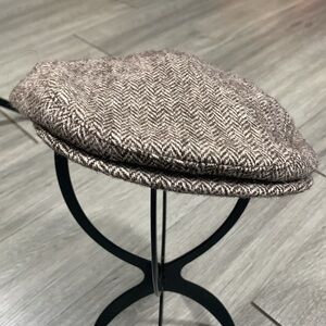 Orvis 1993 “Winston Natural Wool” Made in USA Tweed Paperboy Cap Adjust. Strap