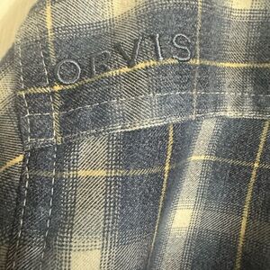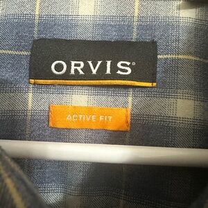 Orvis Active Fit XL Plaid Button-Down Shirt Blue Yellow Check Long Sleeve Casual
