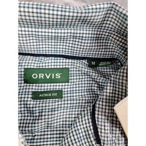 Orvis Active Fit button Shirt Men Medium green check Plaid, stretch, performance