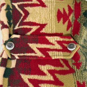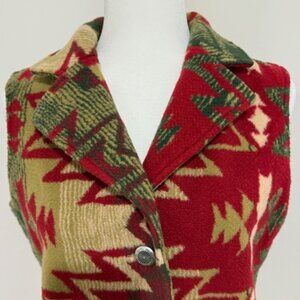 Orvis Aztec Southwestern Red Tan Green Fleece Button Vest Women's Size S
