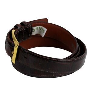 Orvis BROWN REAL LEATHER CROCO PRINT 1 1/8"Wd CASUAL DRESS MEN'S BELT Sz 44 (14B