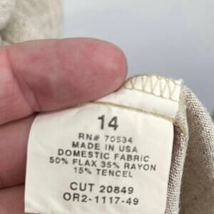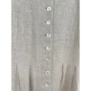 Orvis Beige Button Down Linen Blend Mother Of Pearl Buttons Maxi Dress Size 14