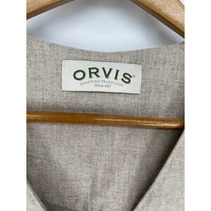 Orvis Beige Button Down Linen Blend Mother Of Pearl Buttons Maxi Dress Size 14. Measurements are approximate.