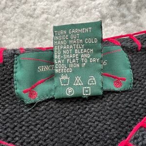 Orvis black pullover crewneck sweater features cute Christmas tree applique and embroidery. Red stitching at neck, wrists and hem.