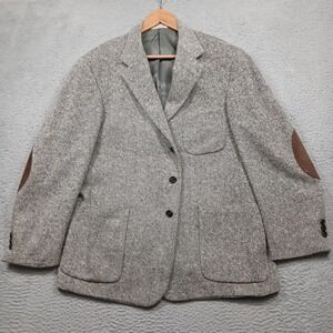 Orvis Blazer Mens Large Gray Tweed Sport Coat Elbow Patches 3 Button Made USA